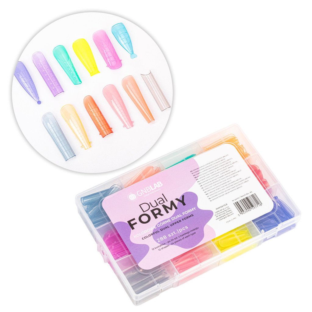 Profesionální sady duálních forem patří mezi nepostradatelné pomůcky pro modeláž a prodlužování nehtů pomocí gelu nebo akrygelu. Tyto barevné formy s měrkou umožňují přesnou práci, snadné tvarování a dokonalý výsledek bez nutnosti pilování.