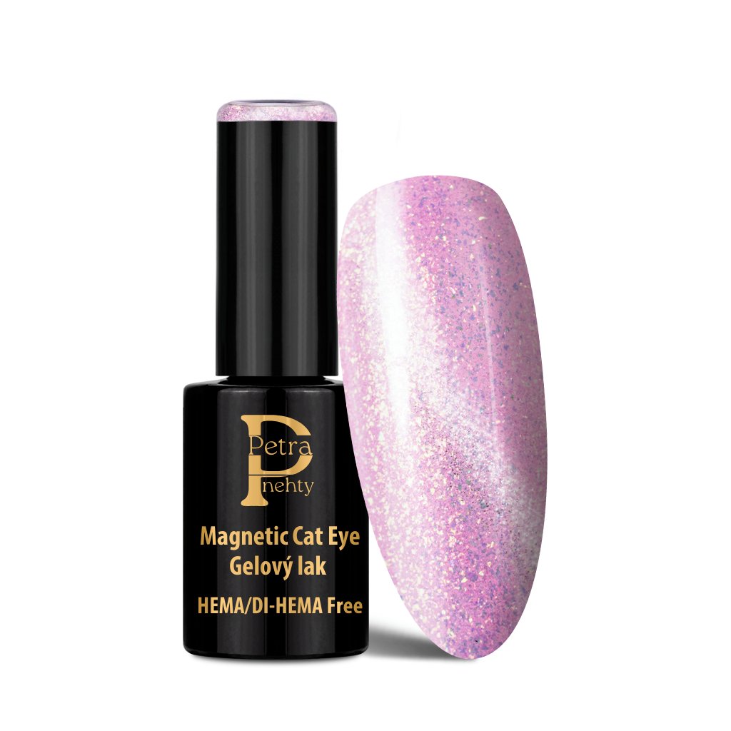 Magnetic Cat Eye gel lak Pink Amethyst s výrazným třpytivým efektem kočičího oka. HEMA Free, intenzivní magnetický odlesk a výdrž až 4 týdny.