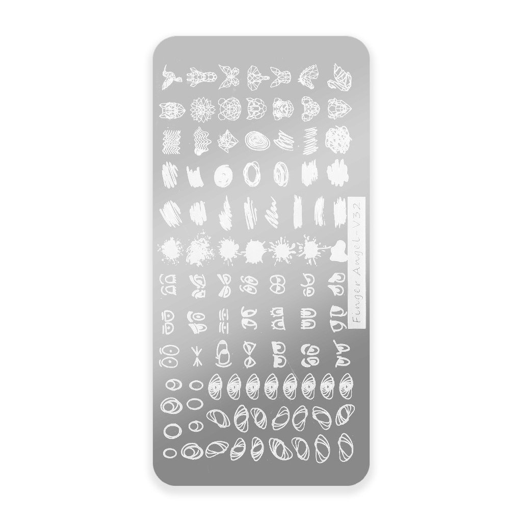 Hledáte texturu a Street Art styl? Destička V32 je ideální pro expresivní a abstraktní designy! Obsahuje vzory připomínající stříkance barvy, tahy štětcem a chaotické šmouhy. Vytvořte si Grunge nehty během sekund. Zaručeně upoutáte pozornost!