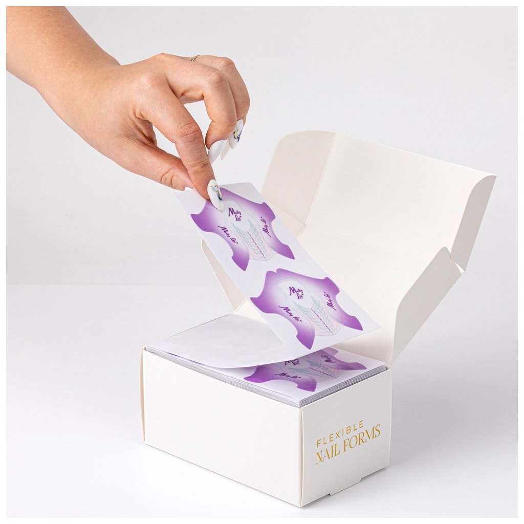 Každý typ našich forem dokonale přilne k nehtu, díky čemuž se zbavíte problému se 'zatékáním' gelu pod nehet, což často vede k prasklinám. Dokonale sladěné, silné lepidlo zabraňuje odlepování, ale nezpůsobuje podráždění, takže jej lze použít i pro velmi citlivé ruce. Perfektní technika umístění šablony a také dobře sladěná šablona dohromady zaručí trvanlivost modeláže! Estetický a zajímavý design šablon potěší nejen vaše oko, ale i vaše klienty!