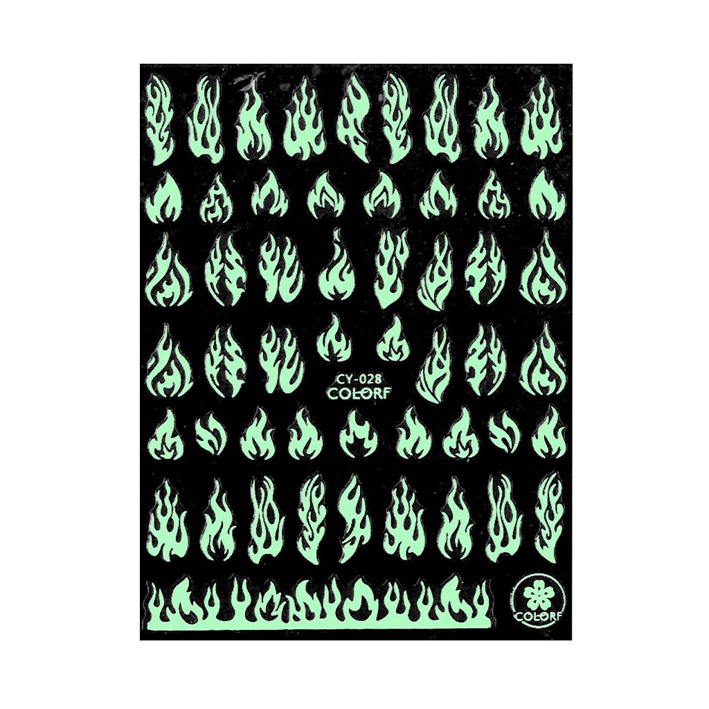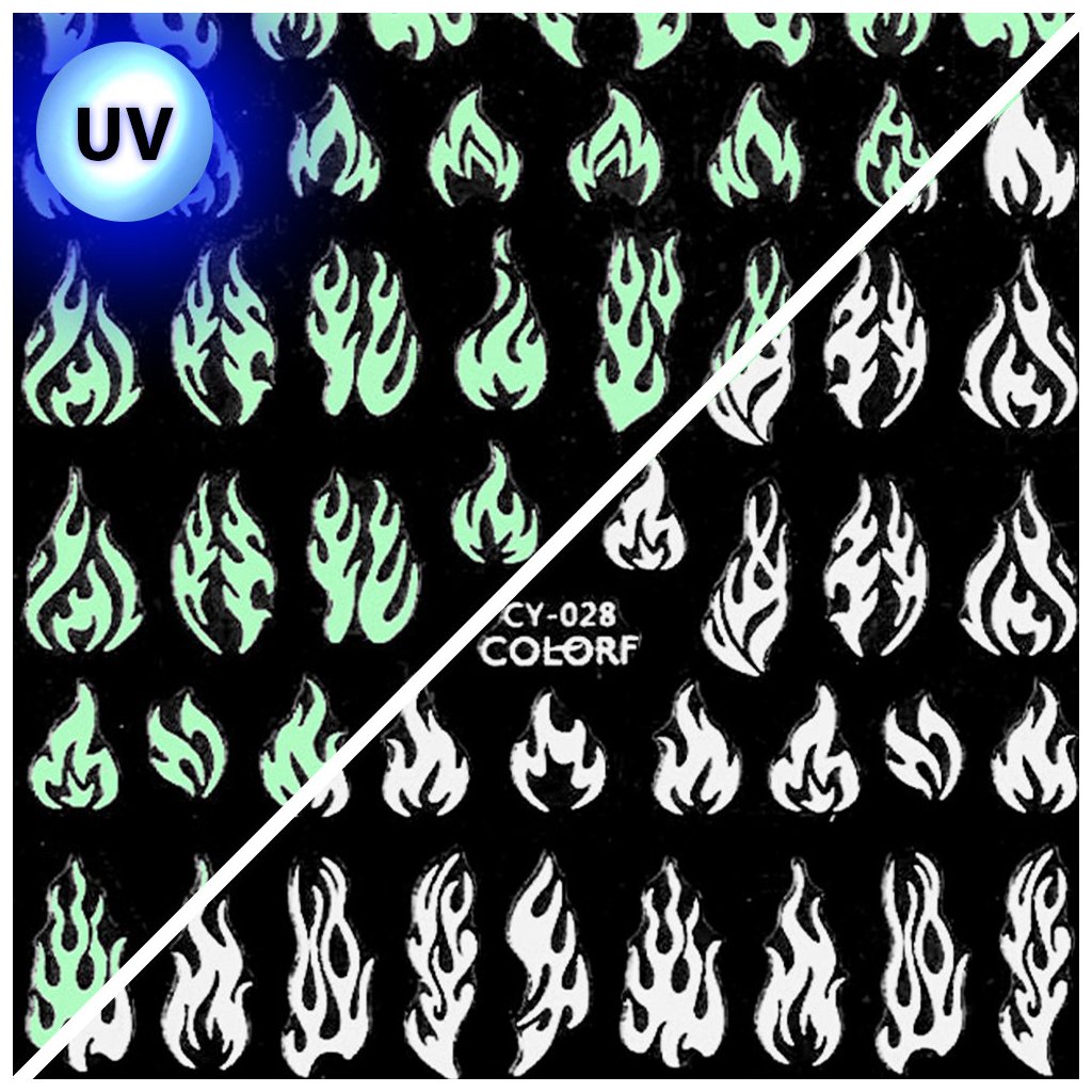 Samolepka na nehty svítící ve tmě - Plameny 028