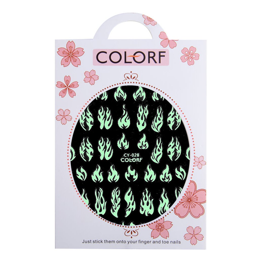 Chceš nehty jako z jiné galaxie? Samolepicí nálepky COLORF CY-028 jsou přesně pro tebe. Obsahují motivy plamenů – a navíc krásně svítí ve tmě i pod UV světlem.