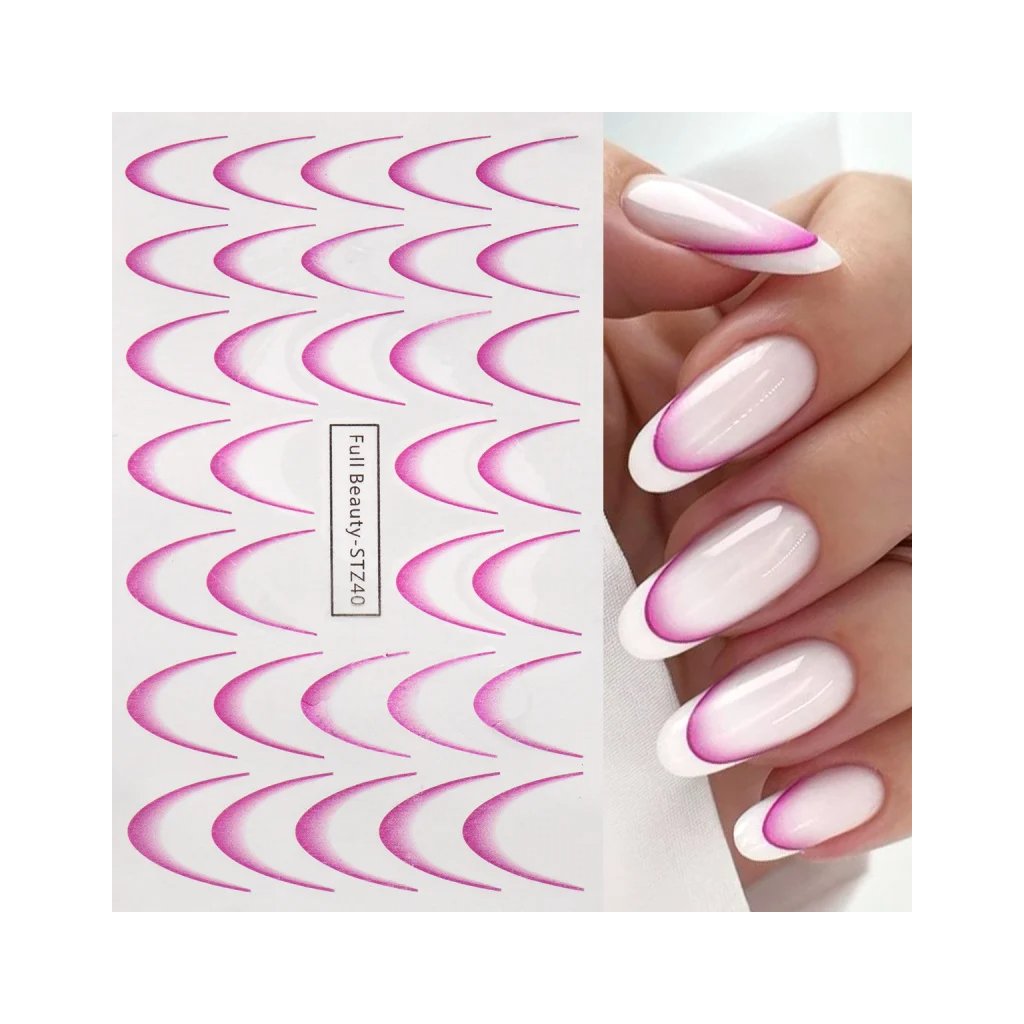 Dopřejte si elegantní francouzskou manikúru s minimálním úsilím! Tyto vodolepky jednoduše přenesete na nehet pomocí vody a zalakujete pro dlouhotrvající efekt. Skvělá volba pro rychlé a precizní zdobení jak doma, tak v salonu.